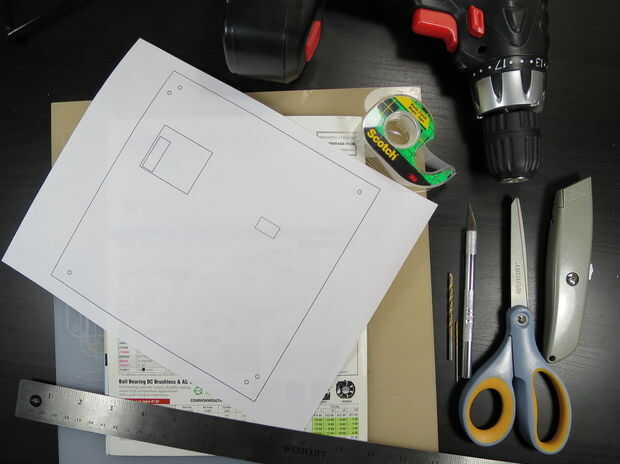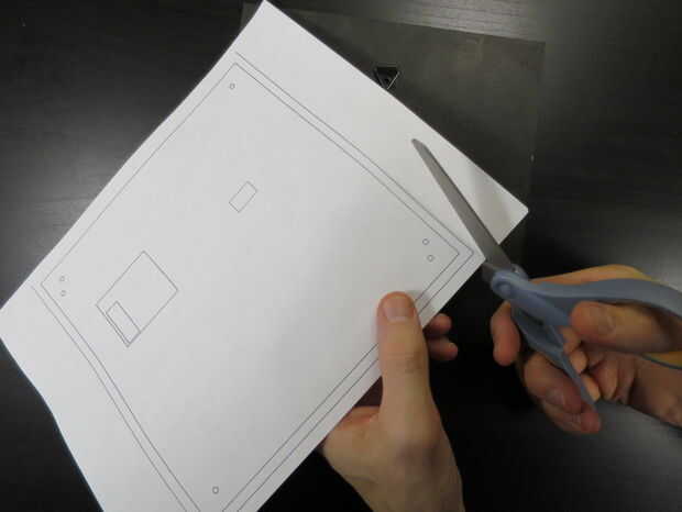 Imprimir la plantilla que coincide con la parte posterior de su panel LED. Asegúrese de que al imprimir la escala es 1:1 para que las dimensiones de la plantilla son exactas. Quizás desee Compruebe con una regla que el contorno del panel en la plantilla de 192mm, y el 8" Plaza realmente 8" a través de.