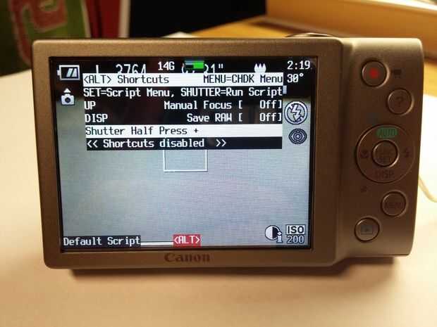 Ahora, dependiendo de su cierto modelo de la cámara, el modo CHDK sólo aparece con una cierta presión del botón. Vea esta Página para su cámara particular. Mi A4000 requiere que mantenga presionado el botón de reproducción para acceder al modo alterno de CHDK (ALT del < >), y un poco roja < ALT > se mostrará en la parte inferior de la pantalla de la cámara (ver cuadro 1). Este es el modo que permite mejorar las capacidades de su cámara, para volver al funcionamiento normal de la cámara, pulse la misma tecla para salir del modo de < ALT >.