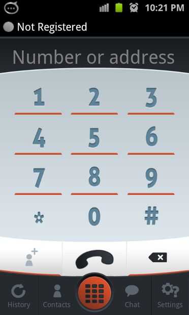 Lanzamiento la aplicación no crea una cuenta si lo pide. no tenemos que entrar a cualquier servidor VOIP. La aplicación debe mostrar no está registrado en la esquina superior izquierda.