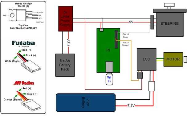Para las cabeceras de 3 pines servo utilicé encabezado de 2,54 mm PCB y soldar cableado directas. Entonces utilicé pegamento dejar las patillas moviéndose. También necesitarás retráctil o equivalente que cubra los empalmes de la soldadura. Para el PI he picado un cable micro USB y utiliza los cables negro y rojo de eso como mi fuente de 5V. Para mi fuente de alimentación linear usé un circuito LM7805 y poner un disipador de calor en él para mantenerlo agradable y fresco.