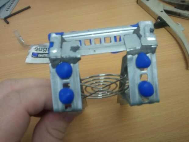 El resto de la sugru es para los pies. Yo no mucho de medir, y no quiero la tabla conseguir rasguñada por este soporte industrial, por lo tanto me sugru tenía los pies también. Para ello, hacer bolas pequeñas, tamaño 4. Usted puede estirar las bolas sobre una superficie que ha sido ligeramente rociada con agua ligeramente jabonosa. No quiero un estanque, sólo una superficie que no se adhieren a la sugru.