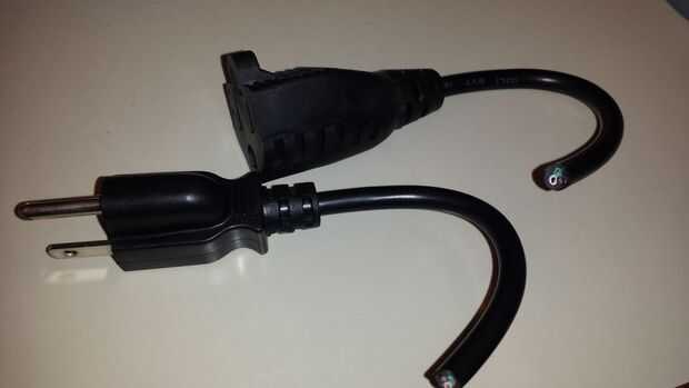 Para conectar el switch a una toma de corriente, tenemos que preparar los conectores macho y hembra. La forma más conveniente de hacer esto sería cortar un cable de extensión corta. Corte el cable de extensión a la mitad y tira con cuidado todos los cables en ambos extremos.