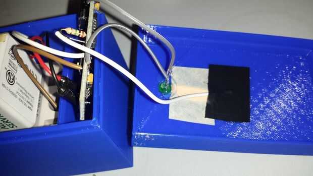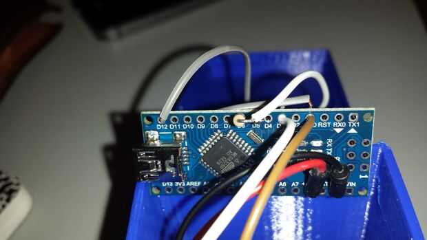 La soldadura de los cables para el ánodo y el cátodo del LED. Conecte los terminales respectivos para pin Digital 12 y GND de Arduino. Verifique la polaridad.