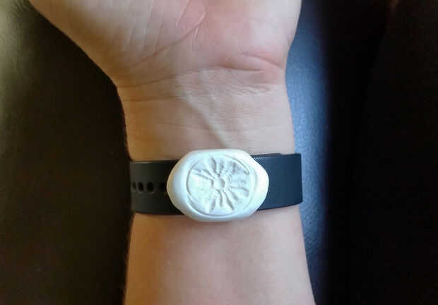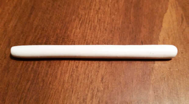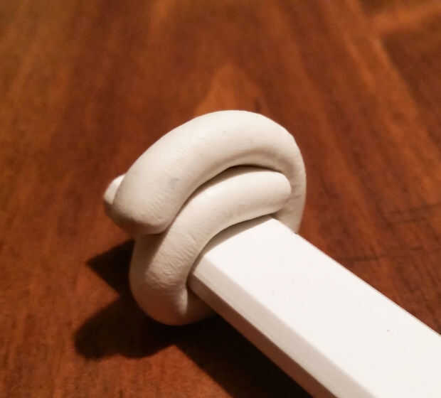Documenté mi segundo intento un poco mejor. En primer lugar, que rodé el sugru en una bola, luego que rodé en una serpiente. Entonces, sacan el polvo un lápiz plano con talco para que no se pegue. (Tuve la suerte de encontrar un objeto similar en tamaño a mi reloj. Usted podría probablemente hacer su propia hoja de lata o algo.) Luego envuelve la forma de serpiente alrededor del lápiz y superpuestos en la parte superior.