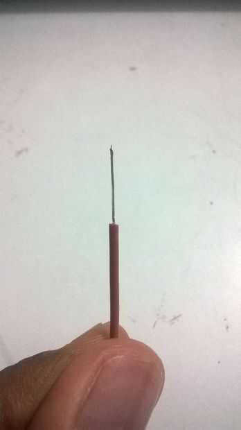 Toma un pedazo largo de alambre (aprox. 10 cm.). Tira el material aislante externo de unos 1,5 cm del alambre.