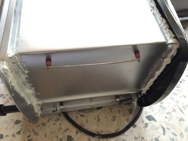 Ahora viene la parte dura - aplicación de la cinta de aluminio en el interior de la cámara incluyendo la puerta de cristal. Debe cubrir cualquier abierto las costuras, bisagras lagunas etc. para evitar la pérdida de calor.