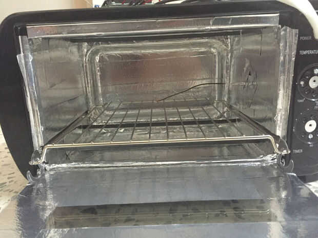 - Cinta del papel de aluminio - que se aplicará dentro del horno que el calor se refleja bien y también para cubrir manchas de calor podría escaparse y afectan el calentamiento de la cámara. La ControLeo2 construir la guía utiliza reflejar-un oro que lamentablemente no estaba disponible en mi parte del mundo.