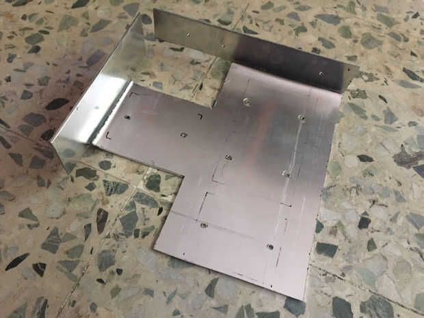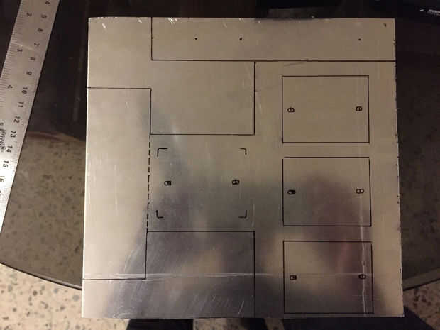 También hice un pequeño montaje para la fijación de los relés de estado sólido y el montaje esta placa de aluminio al horno. Elegí una hoja de aluminio de espesor 1,5 mm pero elegir algo un poco más delgado. Fue realmente doloroso esto cortar con el Dremel. Una hoja de 1mm debe dar la misma rigidez y sería más fácil trabajar con.
