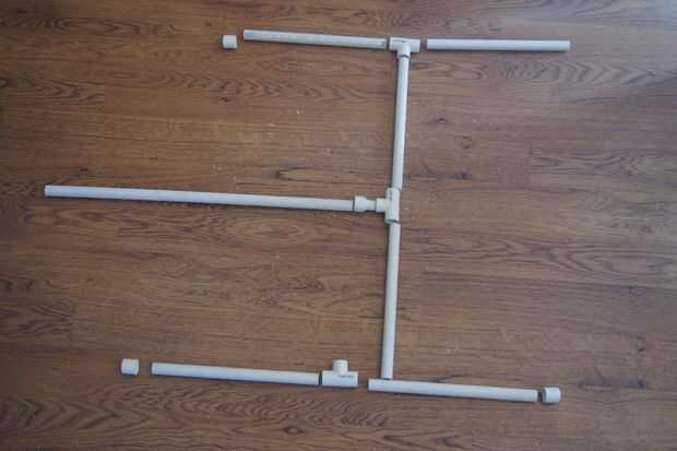 Pegamento y armar la BASE, trazado de las piezas en el orden en el que se montará: extremo, casquillo sección de 12 pulgadas, tee de resbalón, secciones de 12 pulgadas, finales, etc..