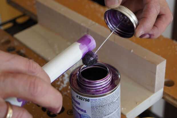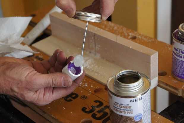 Limpie el exterior de la tubería y el interior el accesorio con limpiador de PVC. Pegue los pedazos uno a la vez, cemento establece en segundos...