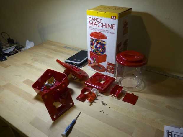 1. Usando un destornillador phillips pequeño, desarmar al asistente de caramelo en trozos individuales.