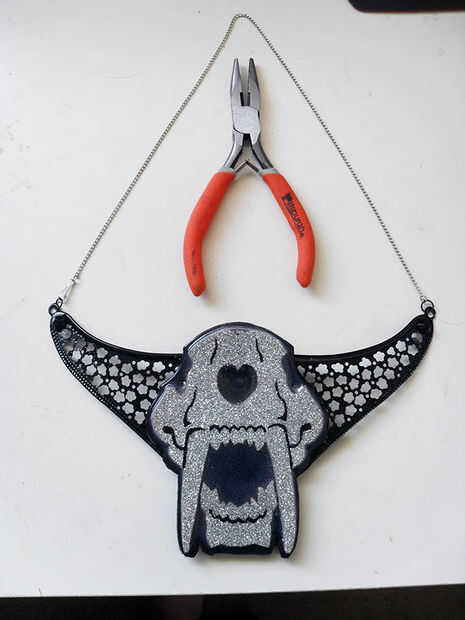 Joyería alicate para sujetar un extremo de la cadena a un anillo del salto. La hebilla se coloque al otro lado. He encontrado esto para ser un medio más simple de colgar que intentar elaborar un broche centro como los de la mayoría de collares.
