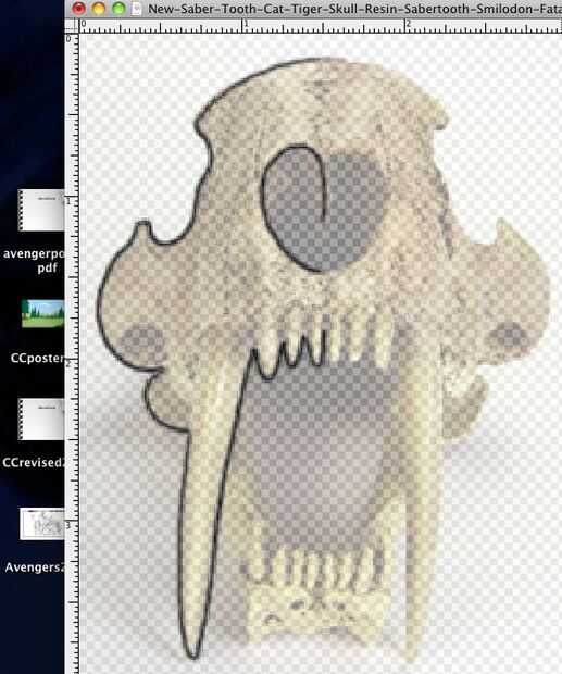 Crear una nueva capa. En esta capa, dibujar un borde fino, generalizado todo el camino alrededor de las piezas del cráneo. Se trata de la pieza de espuma contrastante el cráneo monta a.