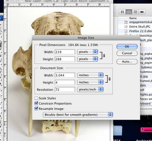 Comprobar el "tamaño de imagen". Usted desea cambiar el tamaño del cráneo para que sea manejable para uso. Usé el cuadro de diálogo imagen Sze cambiar mi altura de cráneo a 4 pulgadas.