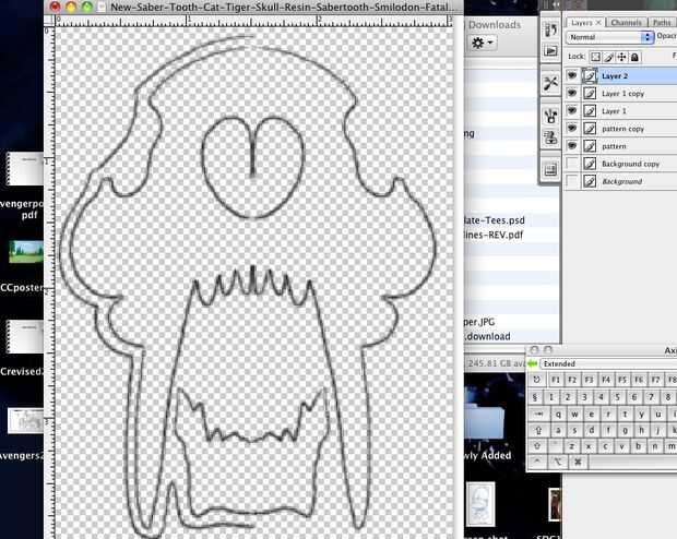 Duplicar la capa y luego "Flip Horozontal". Usted conseguirá una imagen espejo de su primera línea. Lugar en consecuencia por lo que ahora tiene un seguimiento completo de su cráneo.