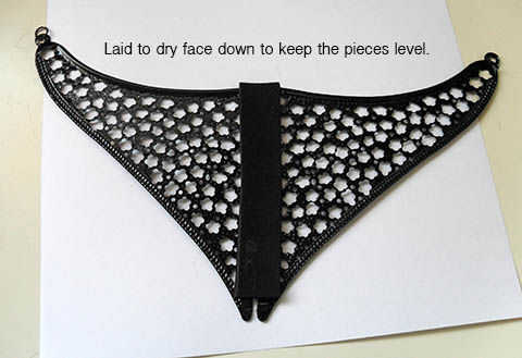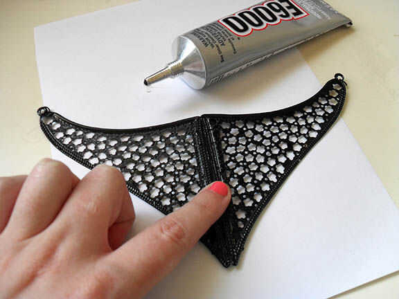 Mientras espera su adhesivo, usted puede preparar su compañero joyas. Éstos eran finos pendientes de metal perforados desde el almacén del dólar que originalmente compré para ver si trabajaría con mi traje de Reina Alien, pero nunca necesité hasta usarlas. Esta es una buena oportunidad para hacer tesoro de basura! Mirada en su desecho bin para golosinas sin usar, o navegar por la tienda de dólar para los artículos con potencial. Activar los sentidos diferentes elementos o ponerlos juntos ver qué nuevas formas te puede crear. Estos pendientes terminaron siendo el ancho perfecto para un plato de gola si usa juntos.