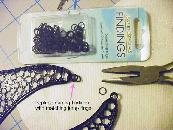 reemplacé los ganchos de pendientes con anillas negro a juego, para que voy a tener una manera de fijar más adelante una cadena.