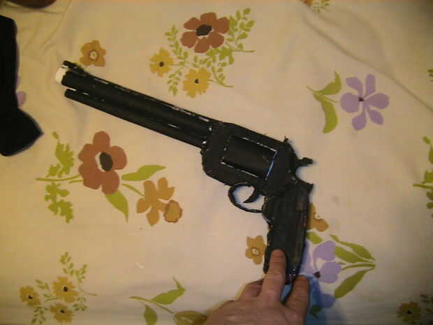 este es mi modelo de un Colt Python, también conocido como el.357 Magnum de Smith & Wesson. Esto se inspiró en este Instructable, aunque he añadido muchos de mis propios detalles, como el oscilación hacia fuera de los cilindros. Revisa ese enlace si