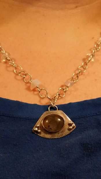 Collar de plata esterlina con piedra semi preciosa.Paso 1: herramientasUsted puede utilizar cualquier tipo de herramientas de la joyeríaPaso 2: materialesSemi preciosas piedra (ágata)1 alambre de metal2 piezas de collar de plata esterlina2 conectores