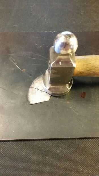luego vas a la hoja del martillo. quieres usar tu martillo persiguiendo aquí y en pequeños golpes de martillo. desea que esta tan plana como sea posible, para obtener una buena soldadura sólida con el bisel y recto. tengo un gran trozo plano de robar que utilizo para obtener mi hoja tan plano como puedo.