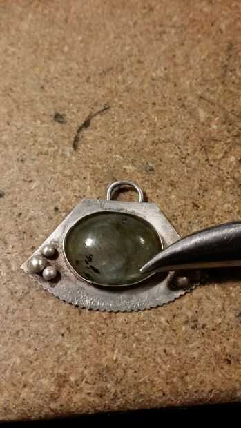 Ahora utilizará su rodillo de bisel o pulidores para el bisel de la piedra. Inicio y pulse en lados de oposición hacia adelante y hacia atrás hasta que han pasado alrededor de la piedra. una vez hecho esto con Lisa la vuelta utilizando la pulidora y el martillo pequeño bisel con forma de cúpula. lo consigue tan suave como sea posible. Asegúrese de que la piedra se mueva ni se agitan en el escenario. Si mantenga presionado bisel hacia abajo hasta que esté apretado.