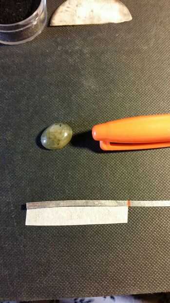 cualquier cómo, luego usted toma la cinta de la piedra y apriete hacia abajo para que usted pueda medir la porción de alambre que va a utilizar. estará cortando lo un poco más grande que lo necesario. mejor un poco largo, que corto!