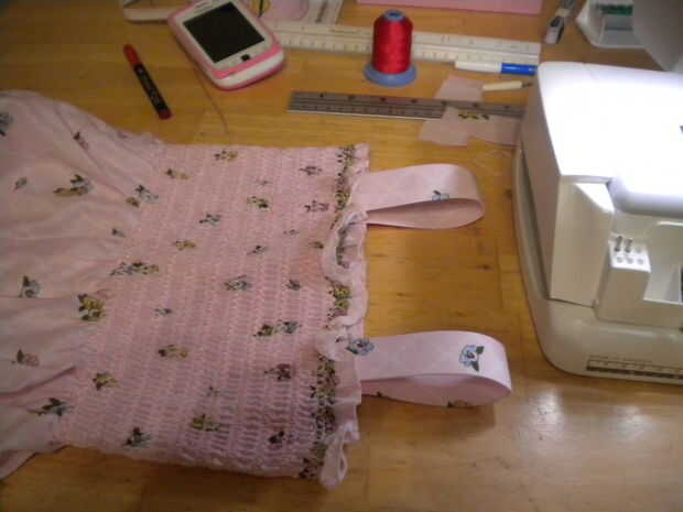 tomar las bandas y pin para el vestido. Si puedes te debe quedar el vestido a todo aquel que se usarlo. después de prender las correas, todo lo que necesitas hacer es coserlas, y se hace el vestido.