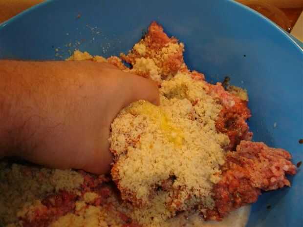Mezclar con las manos hasta que todo está bien combinado y formar una bola en el tazón de fuente.