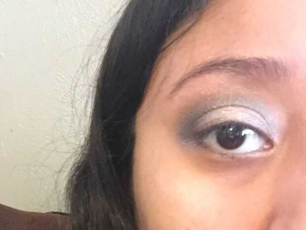 1. para este look utilizo la niña BH partido después de horas. Usando una brocha esponjosa mezcla un color beige claro y mezcla todo mi ojo y pliegue.2. luego con el oscuro marrón de la paleta mezcla esta en el pliegue de mi ojo y la tapa. Hacer que