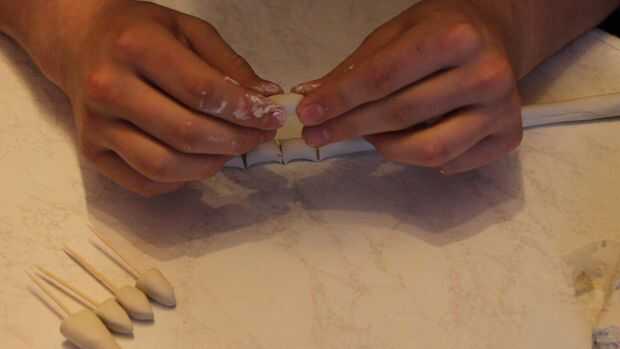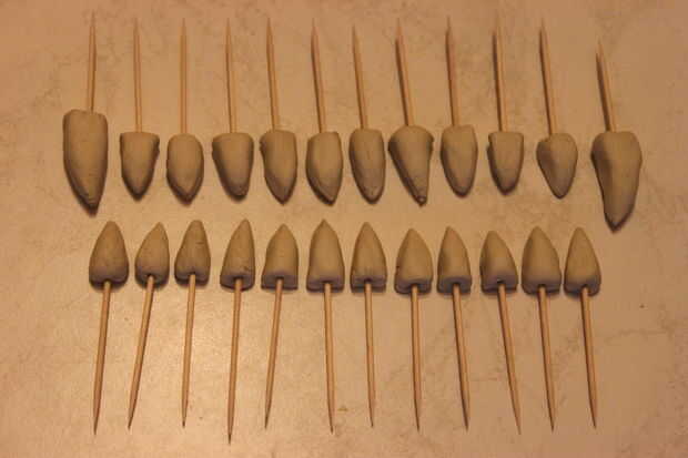 Aus dem tonelada MSD hombre parejas, spitze Zähne und steckt sie mit dem flachen Ende un einen Zahnstocher. Monja lässt man sie einen trocknen etiqueta lang. Wenn man buscará, kann man sie danach en einer beliebigen Farbe anmalen.