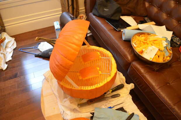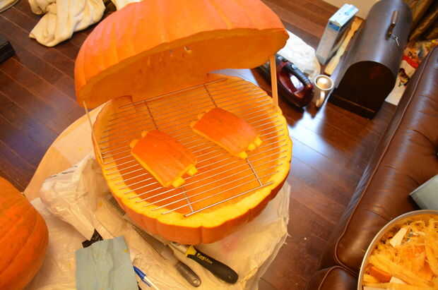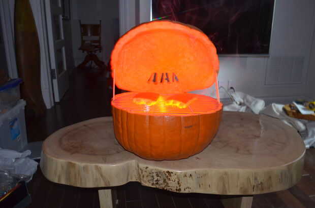 Desde mi barra de amigos es un estilo de Texas BBQ conjunta llaman AAA que pensé que sería mejor jugar en ese tema y crea y fumador de calabaza! Si bien esto no es una calabaza de miedo (a menos que seas un cerdo!) es totalmente "fuera de la caja" y diferente a cualquier otra calabaza tallada que he visto.