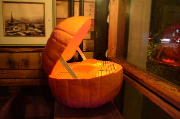 Cada año la Asociación de empresas locales celebra un desfile de calabaza en la calle de mi barra de amigos. Invita a todos los negocios locales a presentar calabazas junto con los residentes locales. La calabaza ganadora obtiene aparece en los carteles de años próximos que aparecen en el tránsito local (que es de gran publicidad para un negocio local!)