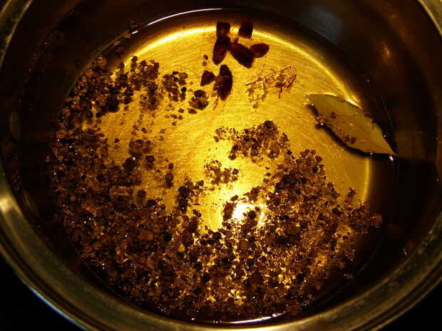 Bien, dan las especias y una fiesta en el mortero las piedras y tirada en la mezcla de vino/miel. Piedras de fecha no quiere cooperar, y después de administrar a los un par de veces, arrojó casi todo...