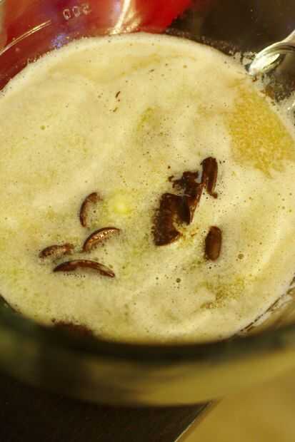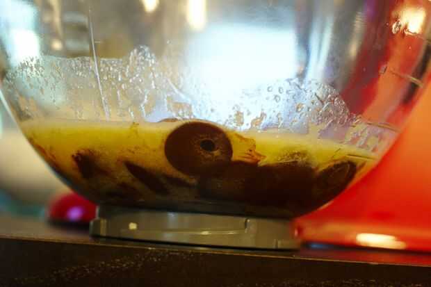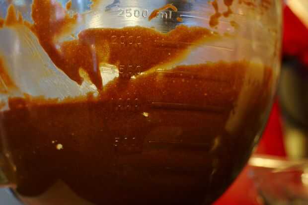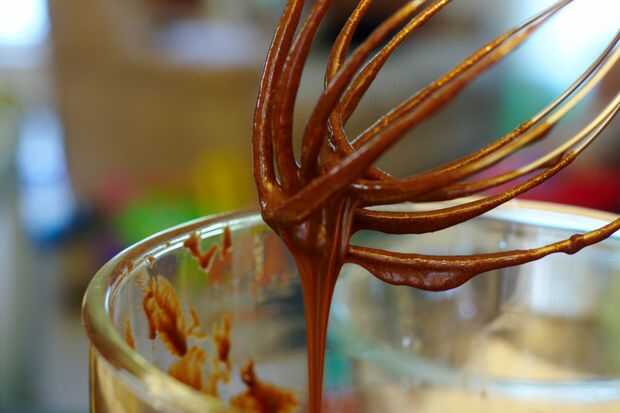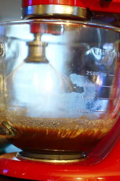 Una vez que la mezcla es completamente lisa, batir poco a poco el azúcar. En esta etapa, la mezcla se verá bastante fea, está bien. Cocina también olor a mantequilla y chocolate, que también está bien.