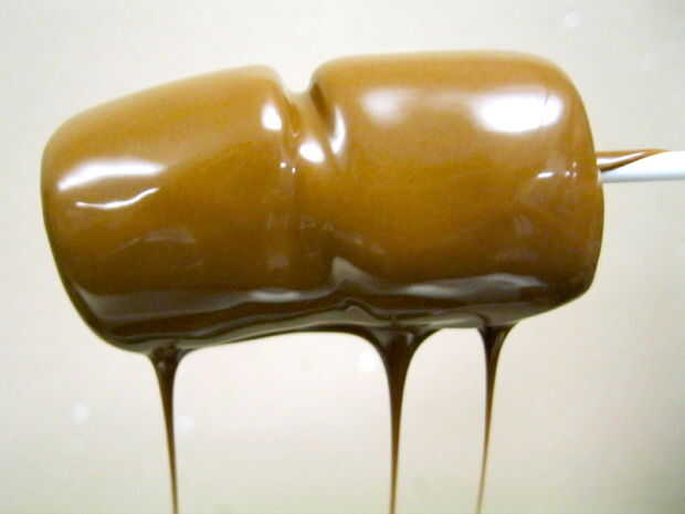 1. Tome sus dos bombones en un palillo y sumergir en el chocolate derretido.