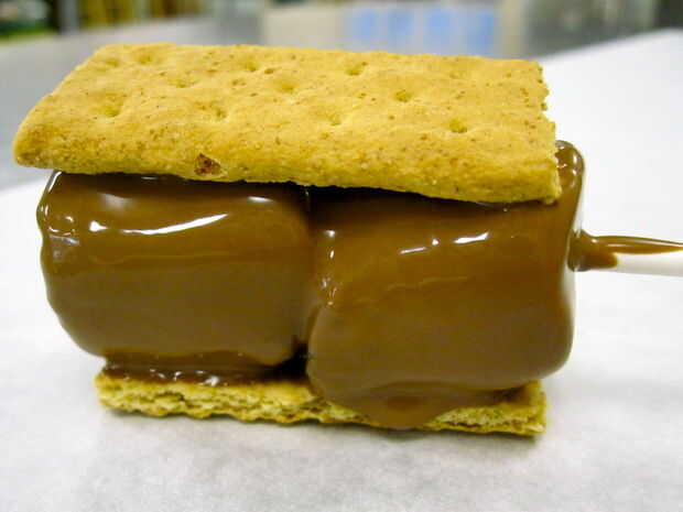 5. usted puede permitir que el chocolate endurezca completamente a comer mientras que todavía se haya derretido. De cualquier forma, realiza su smores en un palo.