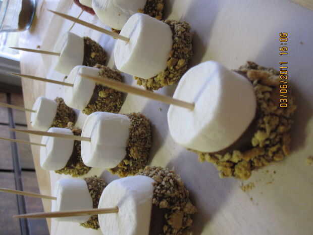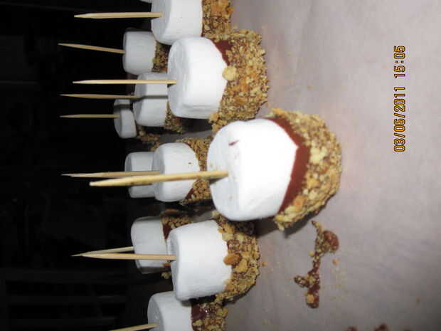 -sostener el malvavisco por el palillo y sumergir la mitad de ella en el molinete chocolate, derretido para quitar exceso