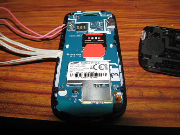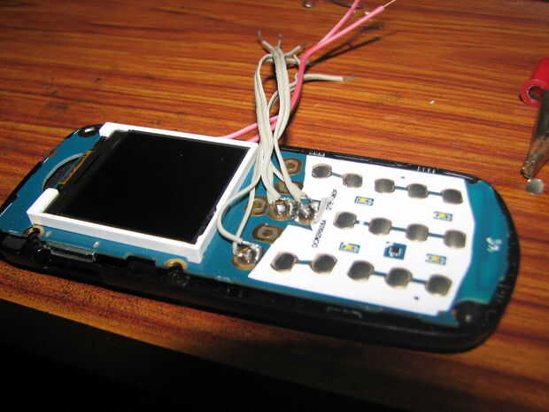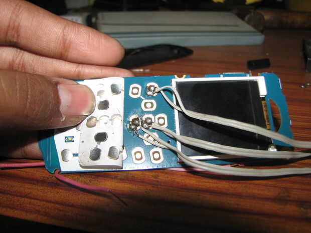 Retire el motor del vibrador y soldar los dos hilos de él en el circuito de LED-LDR y volver a montar el teléfono para completar este paso.