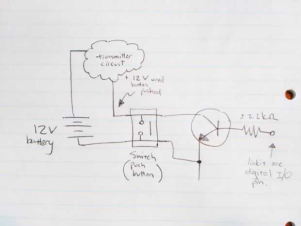 Quiero simular una pulsación de botón, así que puse un transistor NPN en paralelo con el interruptor. Cuando el transistor está en "off" (en otras palabras, el voltaje en la base es bajo y ninguna corriente puede fluir), el colector será a 12V, pero cuando un voltaje se aplica a la base y el transistor se enciende "", habrá casi * ninguna caída de voltaje en el colector-emisor del transistor (realmente habrá cerca de 0.6 v caída, pero que es suficientemente baja como para darse de alta como una baja lógica).