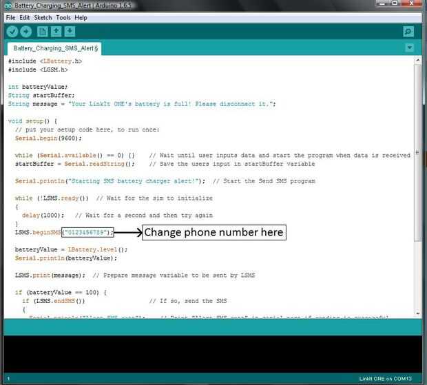 Descargar el código adjunto y ver en las fotos de donde tienes que cambiar el número del móvil en el que se recibe la alerta. Una vez hecho esto, seleccione el puerto COM adecuado verificando primero desde tu Administrador de dispositivos y cuando cargan, pasemos al siguiente paso
