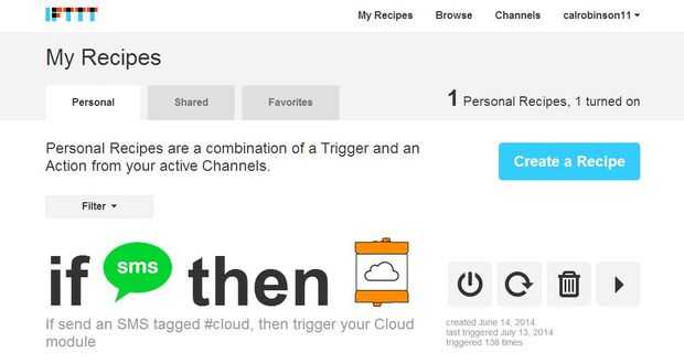 Ahora permite crear la receta. Ir al sitio web de IFTTT y conecte el módulo de la nube. Crear cualquier receta que le gustaría crear para recibir chicles.