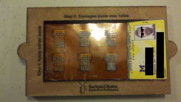 Paso 5: Escobilla de goma utilizando un identificador (o algún tipo de tarjeta de plástico con un borde recto), la soldadura de pasta sobre los agujeros, asegurándose de cubrir todo uniformemente.