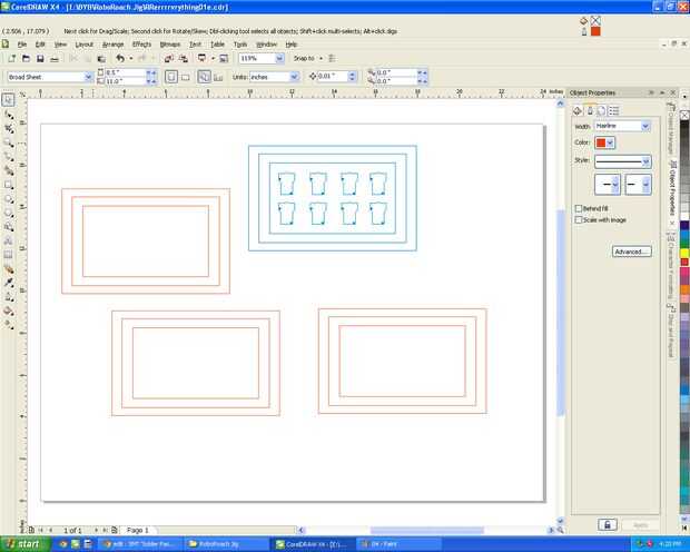 - A continuación, copiar y pegar el conjunto de los tres rectángulos concéntricos (no incluyen los rastros de PCB), para que tenga cuatro juegos. Espacio les de uno a sin embargo prefiere por ahora.