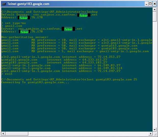 A continuación, tendrá que repetir este paso con el siguiente servidor en la lista. Si ha agotado su lista de nslookup y todavía no tuvo mucha suerte, entonces probablemente hay un problema con su ISP o la gente a ese servicio de correo electrónico no permite conexiones entrantes telntet. Por ejemplo, me han dicho que los usuarios de AOL no telnet, pero no puedo probarlo porque no tengo AOL.