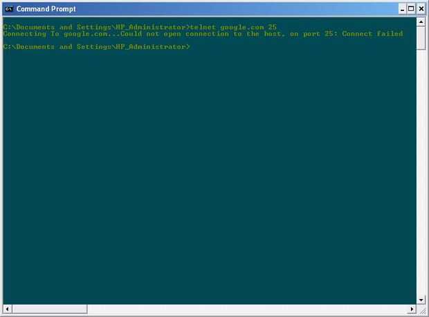 Conexión a google.com...Could no abrir conexión al host, en Puerto 25: Conexión fallida