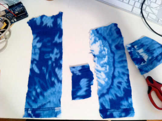 Bien, ahora vamos a hacer una "conmutación", que en este caso es esencialmente dos tiras de alambre envuelto en material conductor, que estará ubicado en la tela. Cuando presione hacia abajo sobre la tela, la voluntad del interruptor, que es lo que nuestro arduino escucharán para enviar un tweet.
