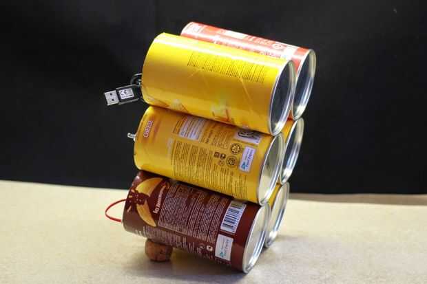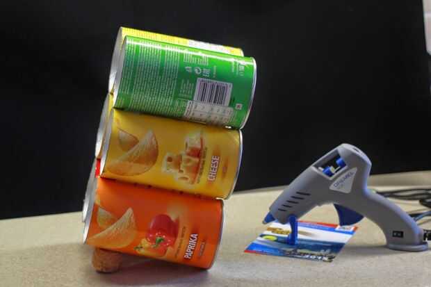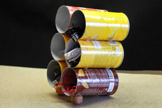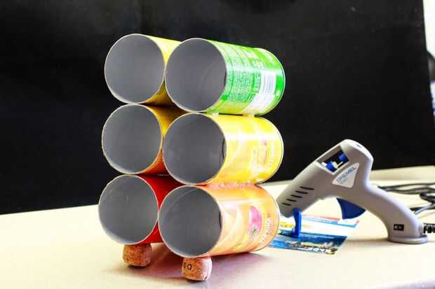 Se trata de tubos organizador está hecho de tubos de snack y corchos de vino.