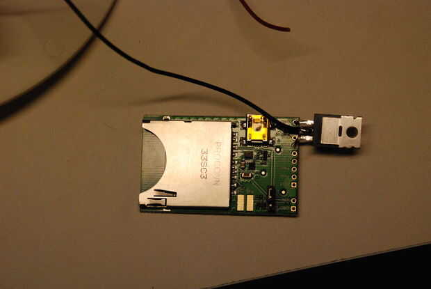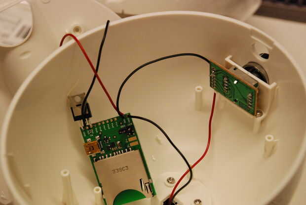 1. Suelde el cable negro de la fuente de alimentación (base) de la SnackMan al pin GND de la imp.