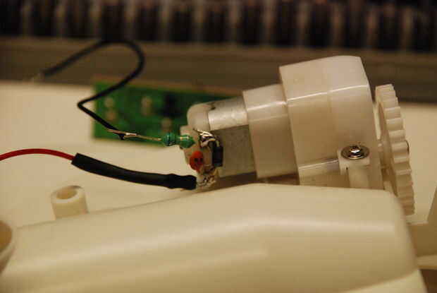 1. Soldar el diodo entre los cables positivos y negativos del motor de SnackMan (ver imagen).