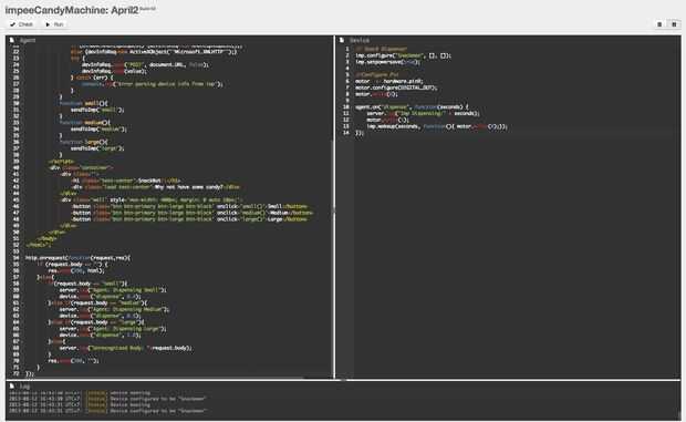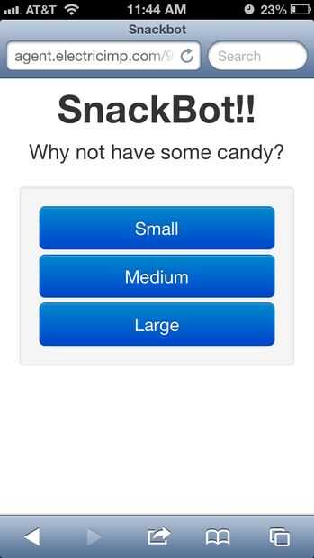 Cuando navegas en agente de enlace el dispositivo de la, usted debe presentarse con una página web. Si hace clic en uno de los botones, debe encender el motor y dispensar dulces.